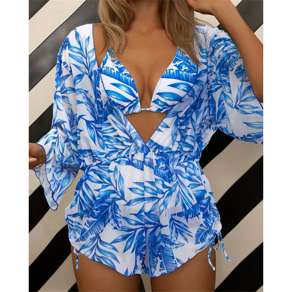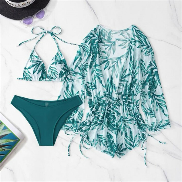 ポイント超超祭 ビキニ 水着 レディース 3点セット セパレート ボタニカル ショーツ プール 体型カバー 上下セット セクシー 40代 美肩 女性用 可愛い