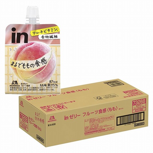 砂糖(国内製造)、もも果汁、難消化性デキストリン、果糖ぶどう糖液糖、発酵乳(殺菌)、寒天/ゲル化剤(増粘多糖類)、香料、乳酸Ca、酸味料、V.C、甘味料(アセスルファムK、スクラロース)、ナイアシン、パントテン酸Ca、乳化剤、V.E、V.B1、V.B2、V.A、V.B6、葉酸、ビオチン、V.D、V.B12