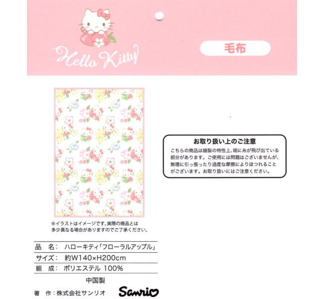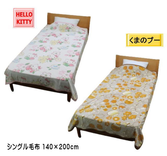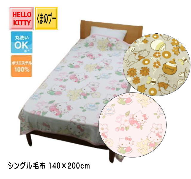 ハローキティ くまのプー/シングル毛布「フローラルアップル」「ワームオレンジ 」Hello Kitty シングルサイズ (MZ-897531)(MZ-896268)(MZ-89-S)