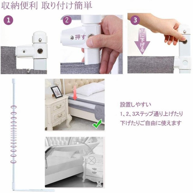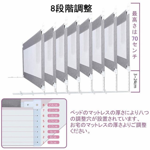 ベッドフェンス ベッドガード 赤ちゃん 幼児用 無添加素材 ベビーサークル 赤ちゃん 落下防止 ベビー用 10階調整可能 転落防止 日本語説明書付き 一枚入り
