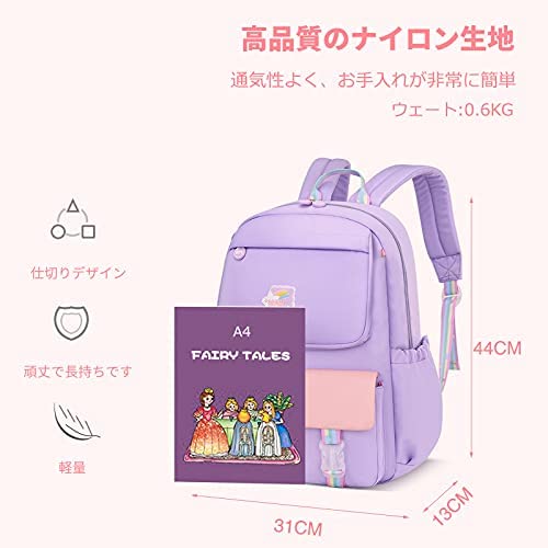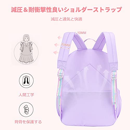 【優れた実用性】★背負い心地快適:人間工学に基づいて設計されたS型ショルダーは通気性の良いメッシュのデザイン、ストレスをバランスよく分解し、お子様の肩や背中を優しく守ります!★防水材質:メイン素材は軽量を考え、厚みのある上質なナイロン素材を使用しました。撥水加工もあるので突然の雨でもバッグ内の荷物をしっかり守ります。