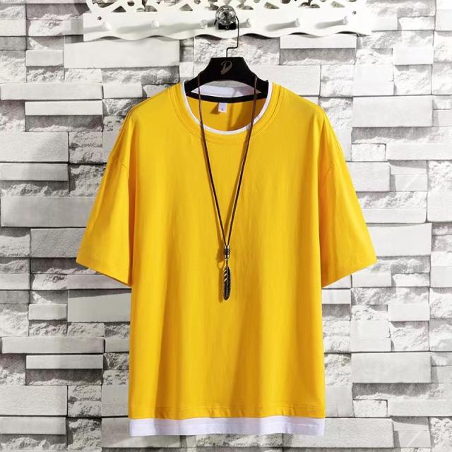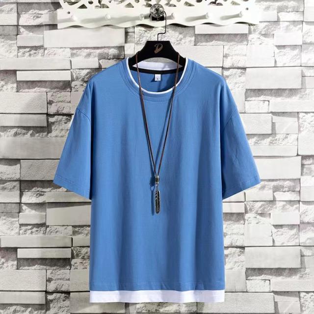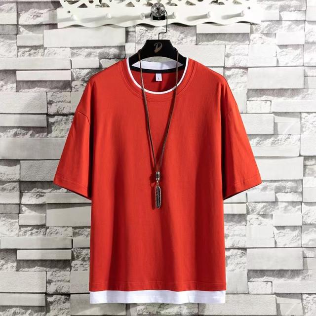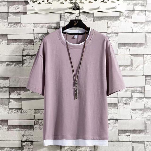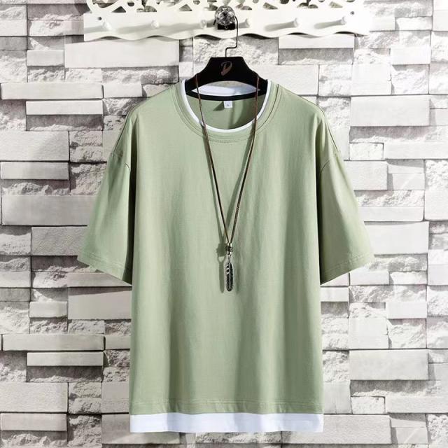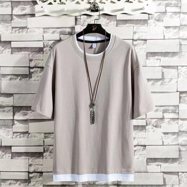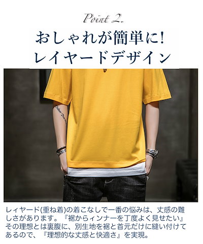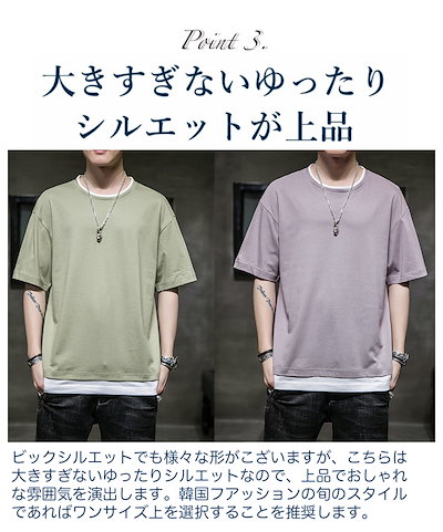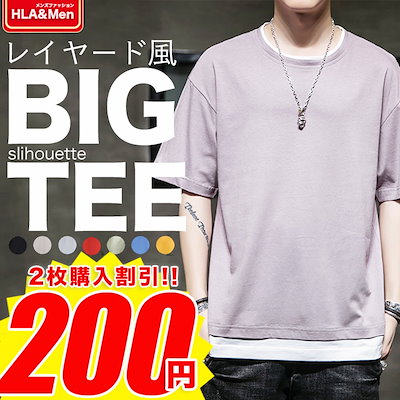 レイヤード風 Tシャツ メンズ 半袖 重ね着風ビッグtシャツ オーバーサイズtシャツ 無地綿100%