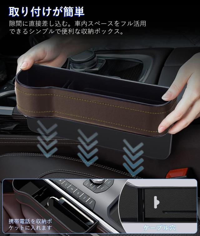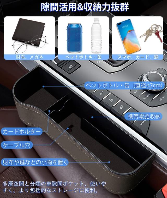 【2023革新改良モデル】車用 サイド収納ボックス 運転席用と助手席用 PU皮革 カーシート隙間 カー用品 便利グッズ 車内 大容量 車シートサイドポケット