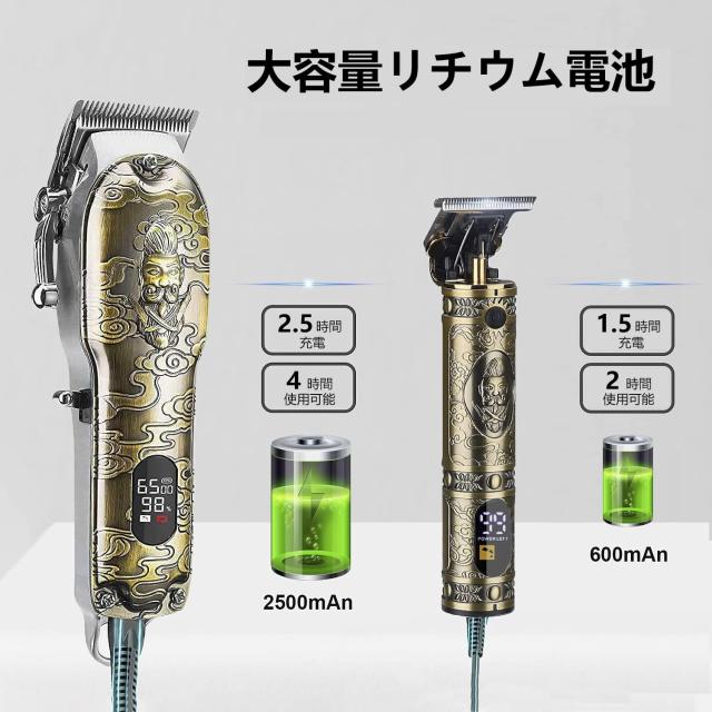 【大容量リチウム電池】大きいバリカン:2.5時間に充電して、4時間使用可能です。小さいバリカン:1.5時間に充電して、2時間使用可能です。