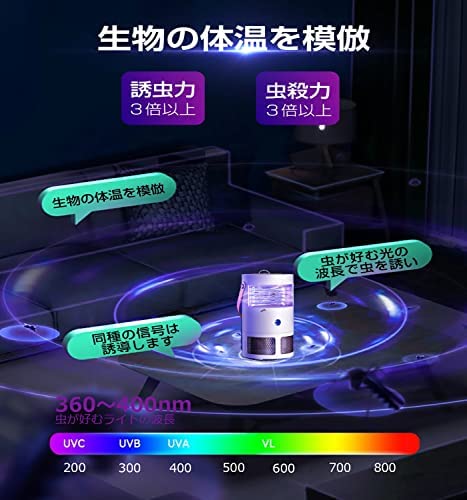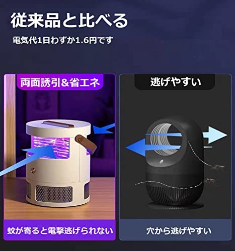 【静音設計・省エネ経済】 従来のファン式殺虫器と違い、羽根が無いので静かに動きます。 静かな環境で自分のタイムを楽しめます。一日中運転し続けても、電気代はわずか約1.6円。高いコスパ実現。