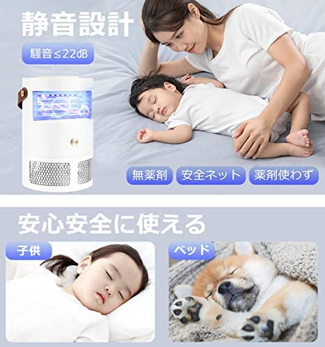 【薬剤不要 安全無害な蚊よけライト】 UV光源吸引式捕虫器です。スプレーの飛び散りも無く、殺虫剤特有のニオイなども全くありません。本製品は光で虫を引き寄せ、電撃ショックで撃退させ、蚊、ハエなどを駆除し、快適にお過ごし頂けます。物理的に害虫を退治できるので、ペット、赤ちゃんやお年寄りがいる家庭や、殺虫スプレーなどで空気を汚したくない場所でも安心してご利用頂けます!