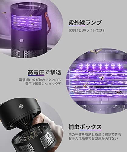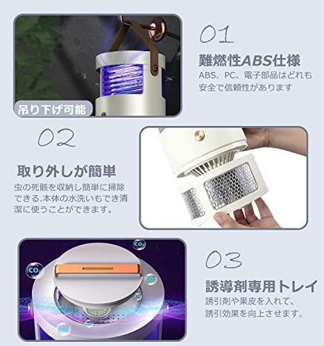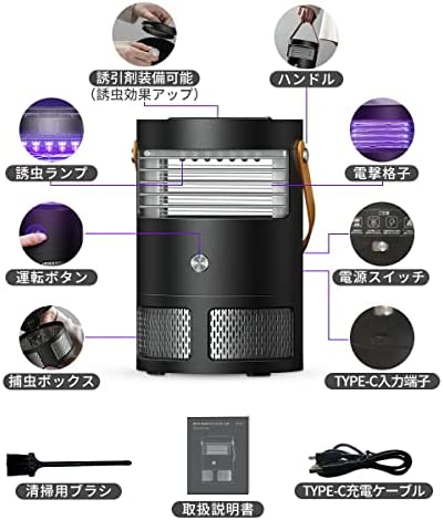【薬剤不用 4in1】電撃殺虫器 捕虫器 コバエ取り機 電気蚊取り器 屋外 UV光源誘引式 type-c給電 蚊除け 虫取り 省エネ 蚊取り