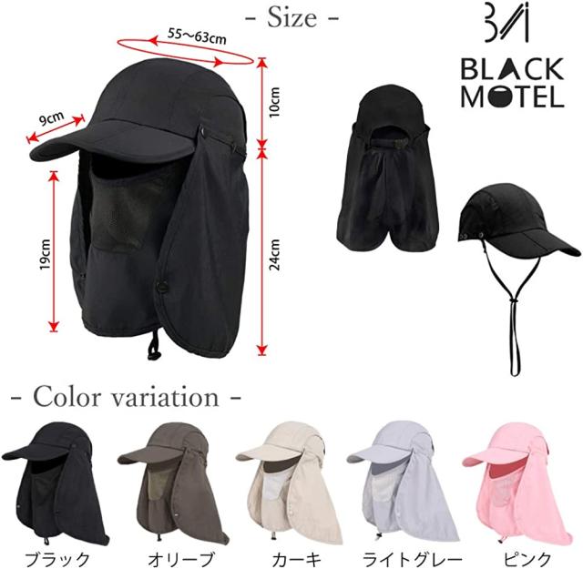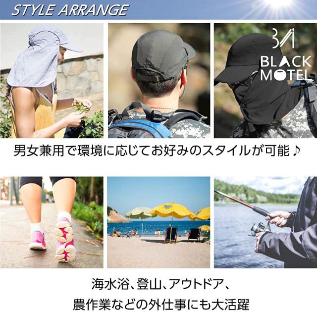 ・【360度UVカット】後頭部から首までの強い紫外線をしっかり防止。日焼け・熱中症対策、防虫、防塵にも最適です! 帽子内側には汗止めベルト付きで、吸水速乾に優れた素材も使用しています。