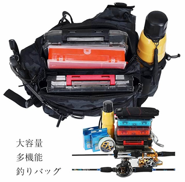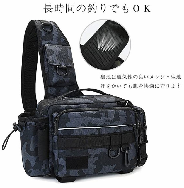 【大容量】:メインポケットには中型ボックス(24x12cm程度)が2、3個程度収納可能ポケットが多く設計タックルバッグ。背中に隠しファスナーポケットがあり、貴重品など入れることができます。ペットボトル、ペンチ、プライヤー、フィッシュグリップを収納する嬉しい専用ポケット。フィッシング専用バッグは多数のポケットを装備しみんなさんの快適な釣りをサポート。ショルダーベルトは110?140cmまで延長でき、ウエストベルトは56?110cmまで調節できます釣りカバン。