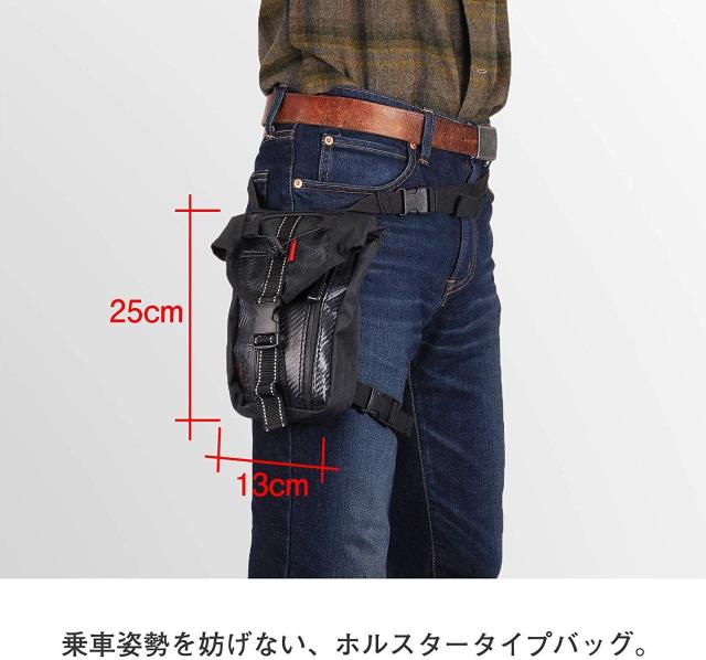 乗車姿勢を妨げないホルスタータイプで、携帯電話や財布等、濡らしたくない物を持ち運べます
