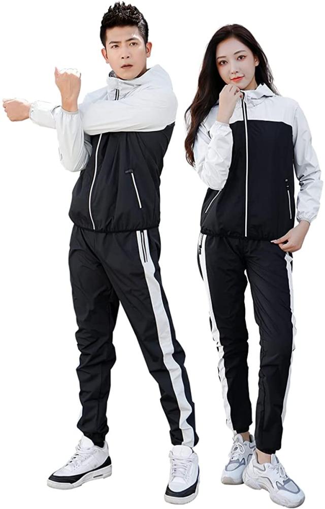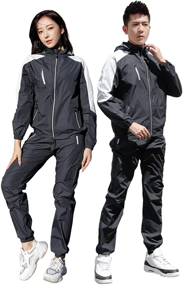 サウナスーツ メンズ レディース [ 10倍発汗 ダイエット ]洗濯可 おしゃれ 男女兼用 ウインドブレーカー 上下セット