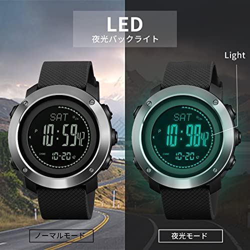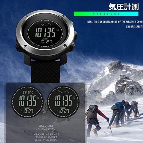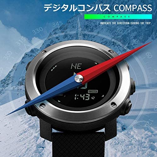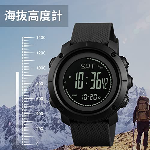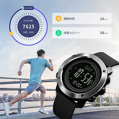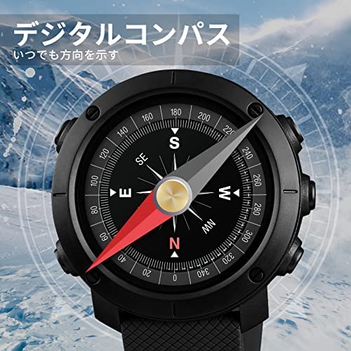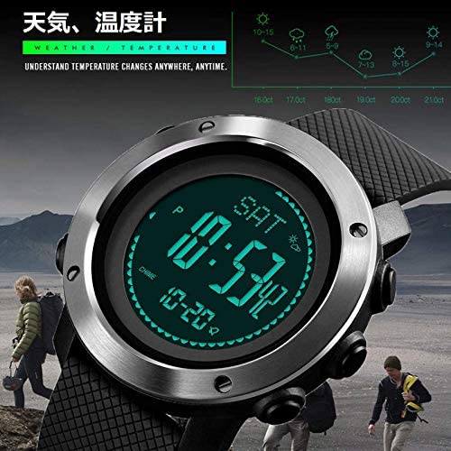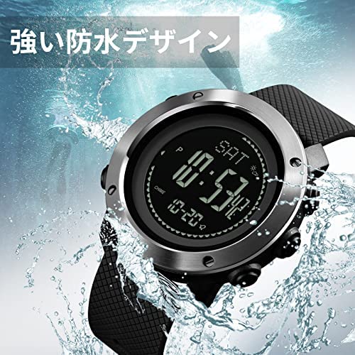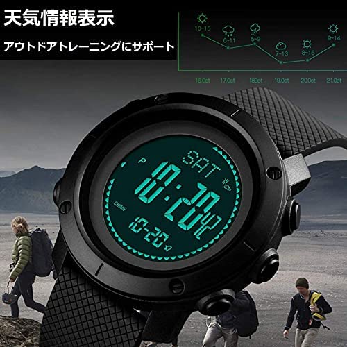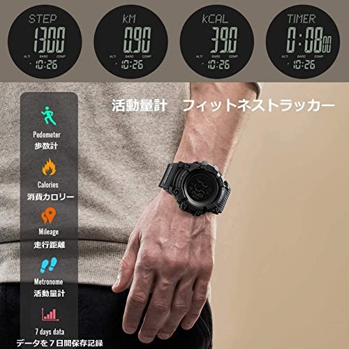 腕時計 メンズ デジタル 距離計 万歩計 腕時計型 コンパス 登山 気圧計 ランニングウォッチ 目覚まし時計 防水時計 気温計 アウトドア用品 スポーツウォッチ 消費カロリー ストップウォッチ 活動量計 日本語説明書
