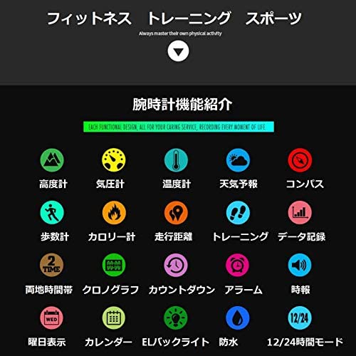 「アウトドア&登山にサポート」★高度計:所在地の海抜高度を計測でき、頂点までの距離を推測可能になります。★気圧計:リアルタイム気圧計測、いつでも天気状態を確認、高山病を避けます。★天気、気温計測、突然の天候に事前に対応できます。★デジタルコンパス付き、より安心してアウトドア活動し、いつでもあなたを案内します。