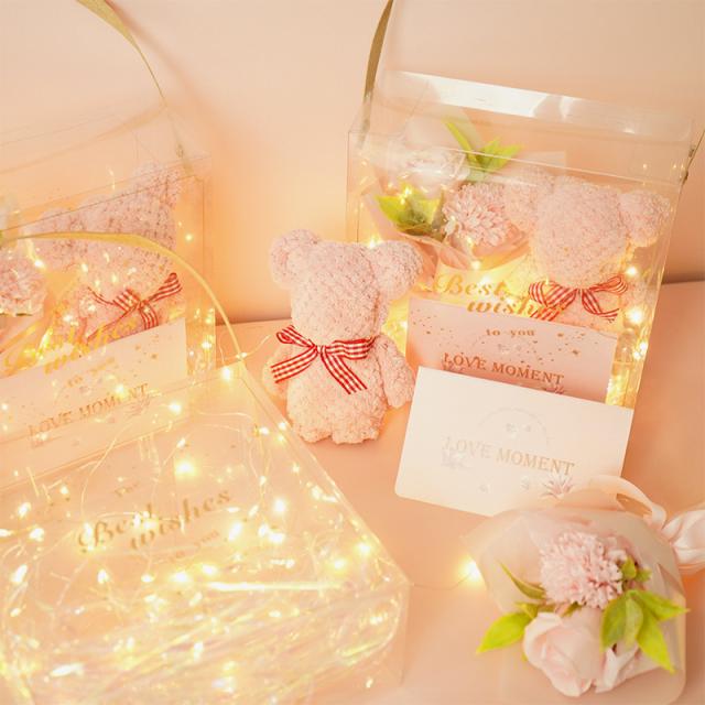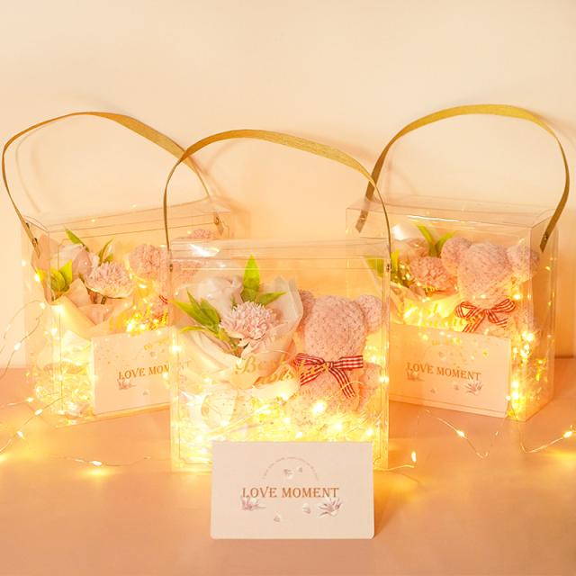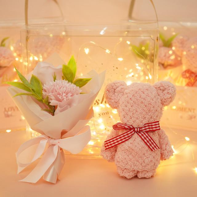 ★タオルベアセットお土産 ソープフラワー 香りの花束 光るギフト