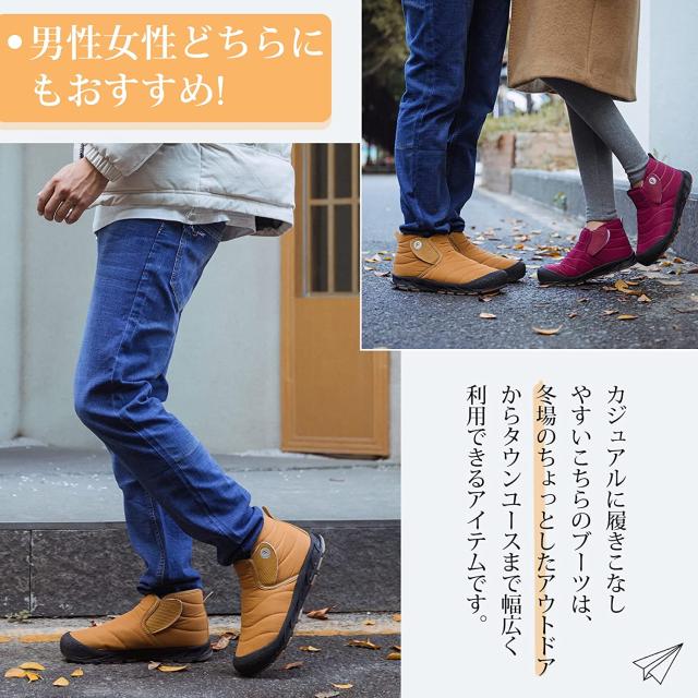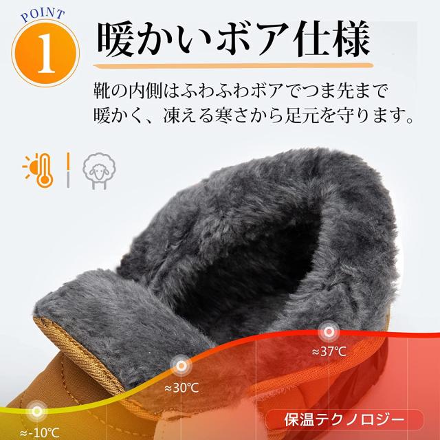 【冬をオシャレで暖かく過ごせるょう!】内側には足先までふかふかと触り心地のよいフリースのような素材を起用し、足を優しく包み込むので寒い外気から足を守ります。ダウンジャケットのようなふわふわな生地で、履き心地も◎足を入れた瞬間から暖かさを実感できるボアをつま先まで全面に施し防寒性が格段にアップ。保温性高いムートンカップインソール付き。?防寒防臭吸湿可能。取り出し可能、しっかり清潔感を保ちます。冬場の冷えから、ふんわり暖かく足元を守ります。