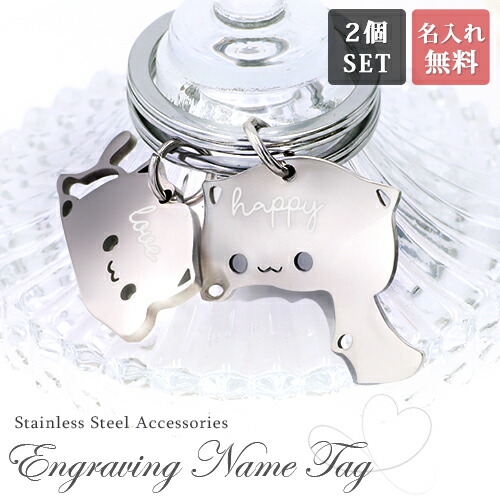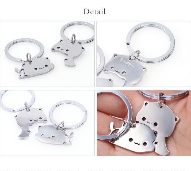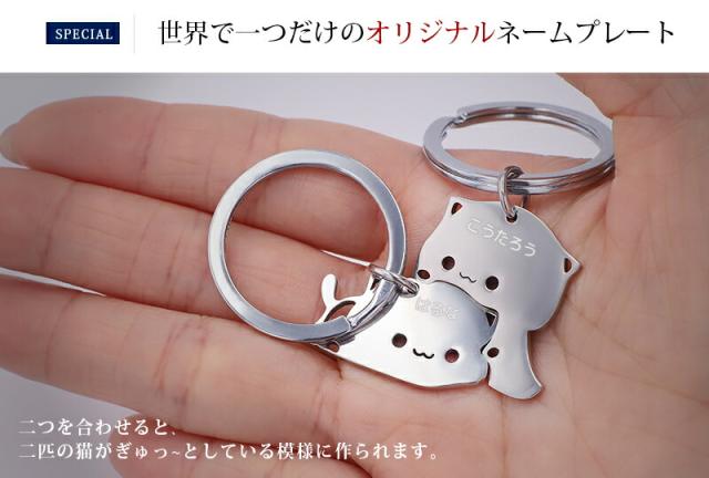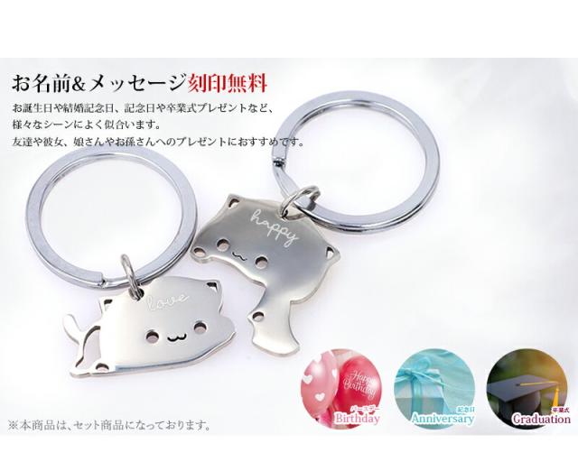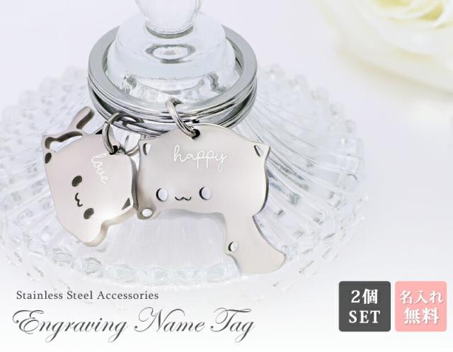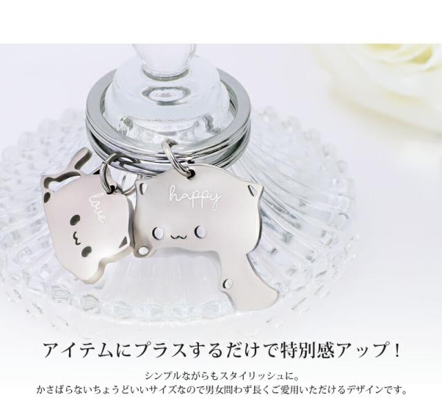 名入れ プレゼント キーホルダー【名入れ無料】ペアキーリング 猫キーリング キーリング バッグチャーム イニシャル ステンレス シンプル 刻印無料 家族 夫婦 姉妹 兄弟 アクセサリー ネーム