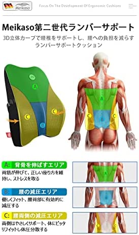 【従来品と違い、新型設計でもっ】本商品の厚さは10cmぐらいがあり、人間工学に基づき、商品全体設計は75°斜めになり、クッションと椅子の隙間をしっかり埋め、長時間のデスクワークやドライブなどに腰から背中をやさしく体を包み込むランバーサポートです。