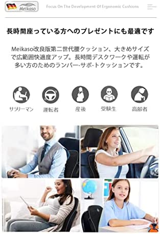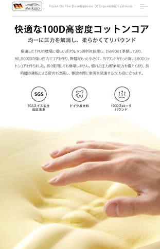 【使用対象・場所と安全保護】毎日のデスクワークや長距離運転などが多い方、快適に座りたい方にオススメ。車中や自宅、オフィスなどいろいろな用途、場所でご使用いただけます。自分用や家族や友人の誕生日のプレゼント、父の日、母の日、敬老の日などのギフトとしてもおすすめです。お客様に安心安全な腰枕を提供するために、本製品は厳しいヨーロッパ基準検査(SGS)試験を合格しました。