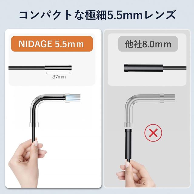 【5M硬性ケーブル】NIDAGE内視鏡のケーブルは従来の柔らかいラインと比べて、硬性ラインのデザインでカンタンに形状固定できますし、角度調整できます。5m硬性ケーブルは曲がった穴やパイプ、家の隅々まで様々な狭い場所に入れます!