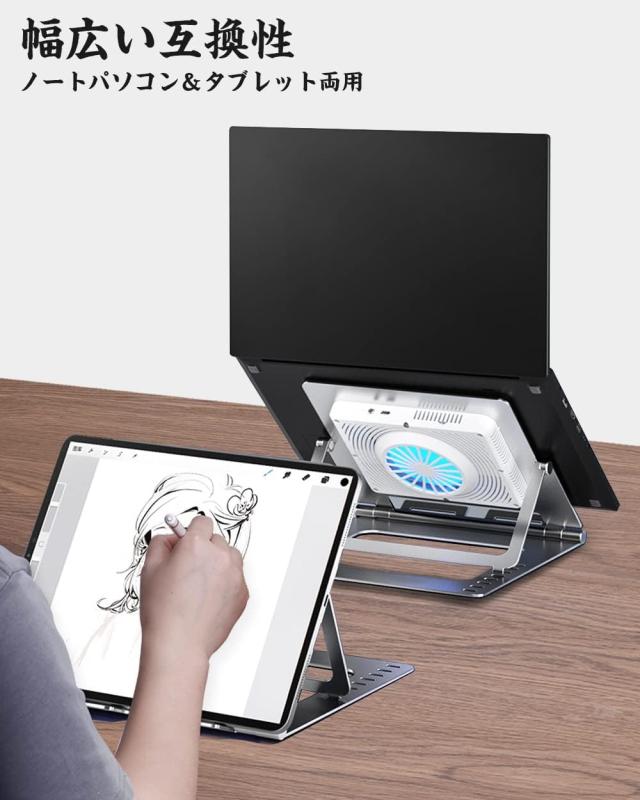 【高さ調整可、作業効率アップ】人体工学に基づいて設計により、ノートPCやタブレット作業時、角度・高度を7階調整可能で自分に最適な高度まで調整できる冷却スタンド!長時間の曲がりを防ぎ、良好な作業姿勢を維持できるため、肩や首の痛みを軽減できて、作業効率も格段に上がります。