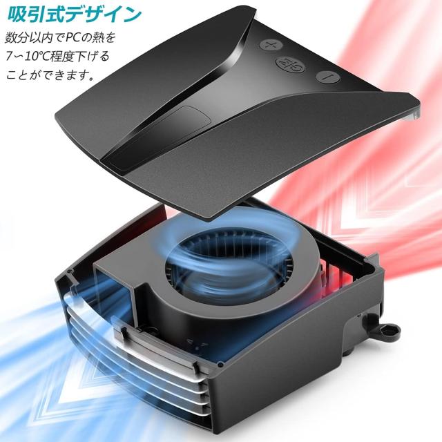 「優れた放熱効果」熱風を吸引するタイプの冷却ファンです。吸引式によりPC放熱口の温度を自動的に測定し、最大5000RPMの回転数で風量も格段にアップ!PCの温度上昇を軽減し快適に動作させます。数十分以内でpcの熱を7〜10℃程度下げることができます。