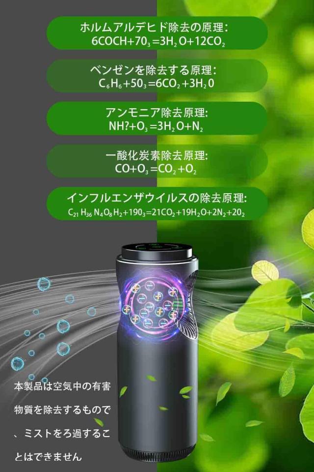 【やさしいオゾンモード】 消耗品不要、残留物ゼロ、行き止まりゼロの除菌・消臭。オゾン発生器は、高圧セラミックプレートを介して空気中の酸素をイオン化し、それを強力な酸化特性を持つオゾンに再結合します。オゾンは、原材料やフィルターを必要とせずに微生物の内部構造を破壊することにより、空気を浄化します。反応終了後、オゾンは酸素に還元され、残留物は発生しません。