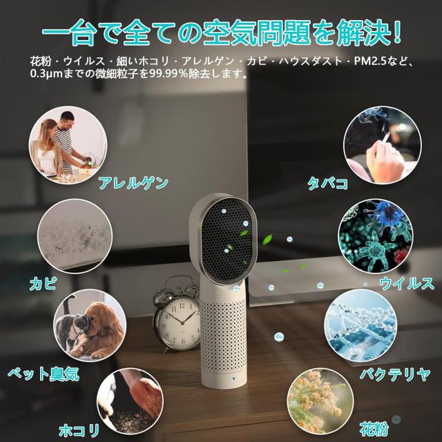 【花粉対策 6重空気清浄 一台多役】空気清浄機 卓上 小型 車用空気清浄機 花粉専用空気清浄機 回転式・固定式兼用 2段階風量調節 10~25畳対応 静音 28~35db 睡眠モード ウイルス除去・集じん・花粉・ほこり・タバコ・ペット・ハウスダスト・PM2.5消臭・除菌