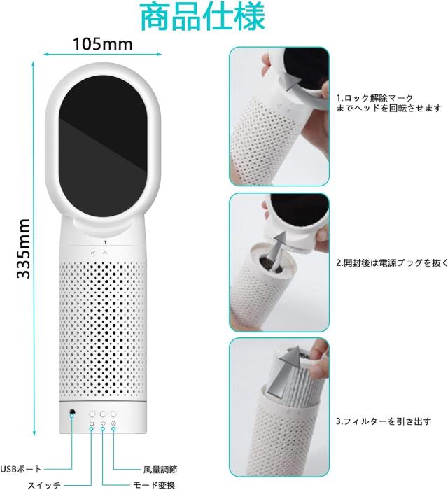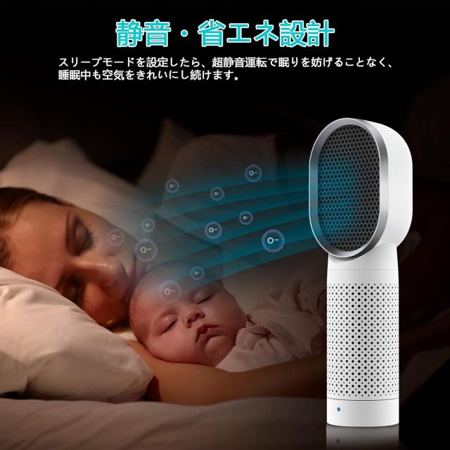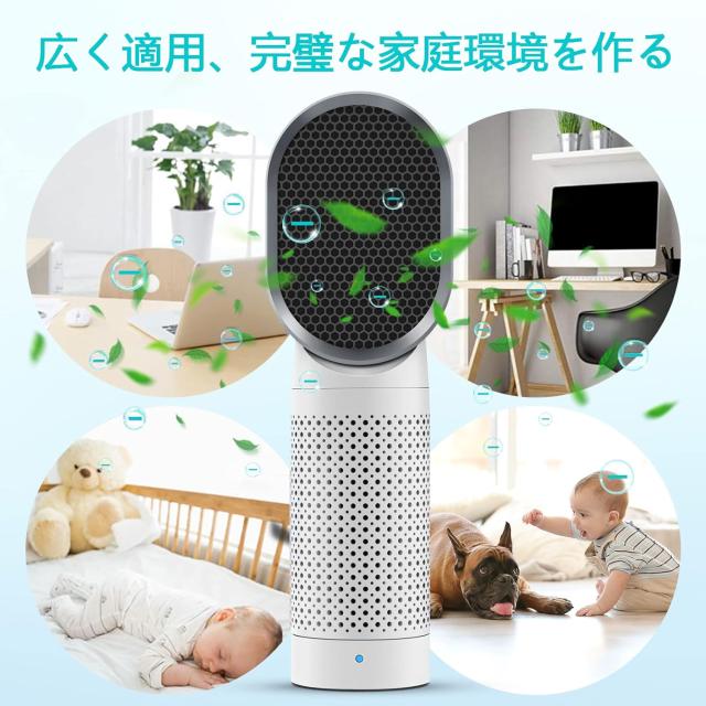【多機能で多くの利点を持つミニ空気清浄機】空気洗浄機は負イオン空気浄化で、1000万個以上の負イオンを放出し、二次煙やホルムアルデヒドなどの有害物質を吸収することができます。また、負イオン美容で、長期使用により肌の状態が改善されます。さらに、アレルギーや花粉症などの病気を治療することができます。最後に、母子家庭、子供、ペット飼育家庭にとっては必需品となっています。この空気清浄機 ペットは、空気中の有害物質を効果的に除去し、健康に役立つだけでなく、美容や健康にも貢献する優れた商品です。
