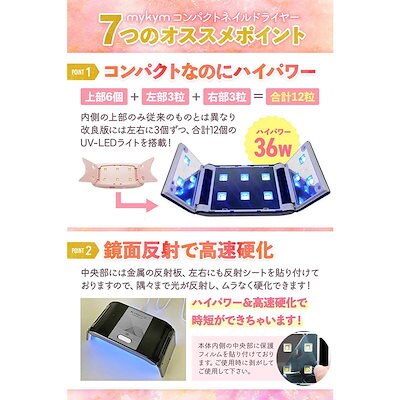 【36wハイパワー】コンパクト設計なのに、最新のUV・LEDライトが12個配置されています。 ジェルネイルやUVレジンがどちらも素早く硬化可能です。