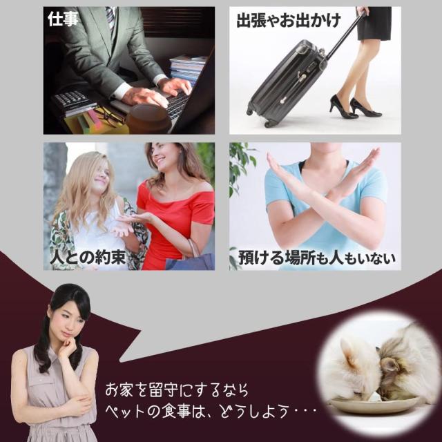 オートペットフィーダーで、あなたの大切なペットも、いつも通りの食事ができます。