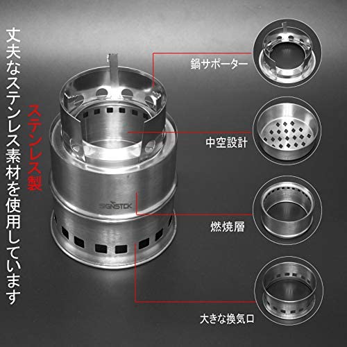 キャンプストーブ ウッドストーブ 二次燃焼 コンパクト ソロキャンプ 焚火台 アウトドア用 軽量ストーブ 燃料不要 五徳 収納パック付