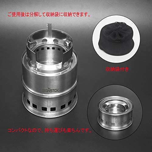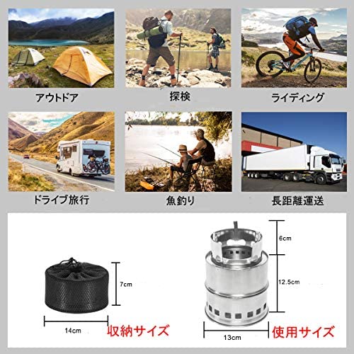 【 コンパクト?軽量 】 キャンプストーブの収納サイズ:直径14×高さ7cm;展開時:直径13×高さ18.5cm;重量:465g。コンパクトなウッドストーブは、収納袋が付属しているので、携帯便利です。そして、燃料不要ので、キャンプ旅行をお気軽にして、温かいものを食べることができます。