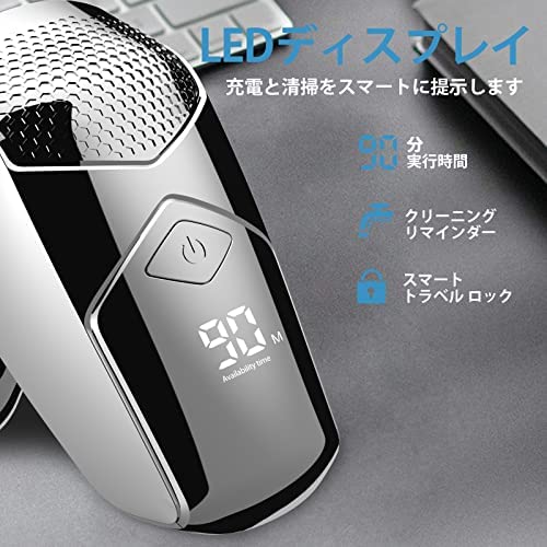 【LEDインテリジェントディスプレイ】電気シェーバーの電力レベルはスマートLEDより提示します。1.5時間の充電で最大90分間のシェービングを継続します。クリーニングリマインダーは、クリーニングするように通知します。注:メンズシェーバーは蛇口の記号が点滅したら、オン/オフボタンを3秒間長押し、シェーバーのロックを解除してクリーニングください。パッケージサイズ:?16 x 13 x 8 cm; 410 g