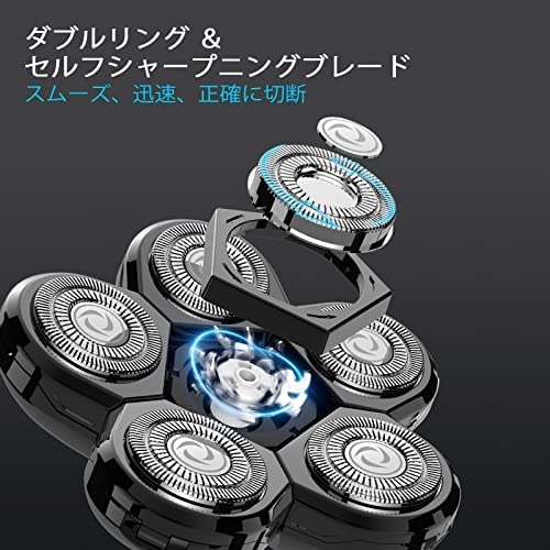 【6つ柔軟なロータリーシェーバーヘッド】多機能 電気シェーバーは新型6つロータリーブレードの設計より、シェービング領域が拡大し、カミソリ時間が節約されます。髭剃り 電気シェーバーは5Dロータリーシェーバーヘッドを持ち、頭、顔、首、顎のすべての方向の輪郭に自動的に適応し、肌に優しくカミソリします。シェービングジェルを利用すると、ひげ剃りがより深くなります。父の日のプレゼントです。