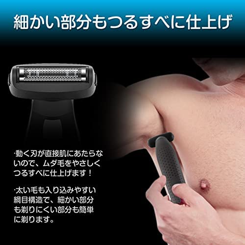 ボディのムダ毛をきれいかつ安全に処理できるボデイシェーバーです。肌へのやさしさを考えて設計しているため、カミソリと比べて肌に与えるダメージが少ない、デリケートな肌に使用することもできる、誤って手を滑らせて肌を切ってしまう心配もほとんどない、自宅でも楽々に除毛します。