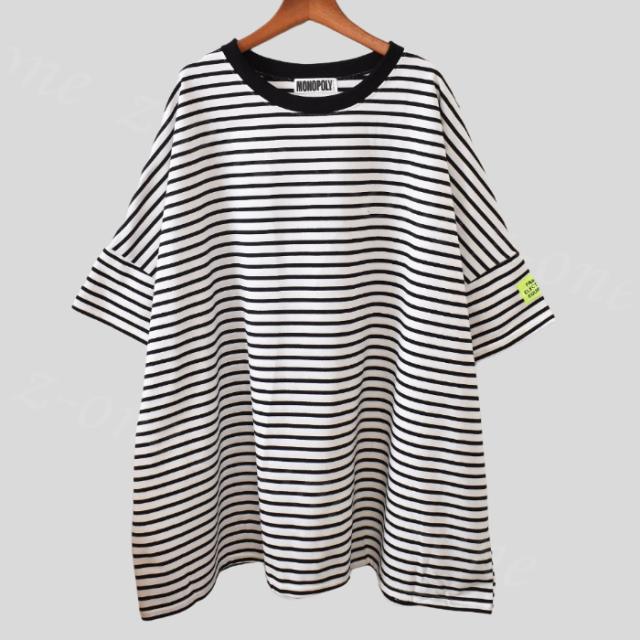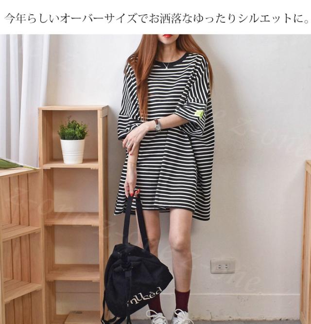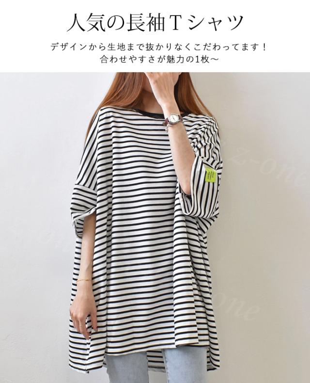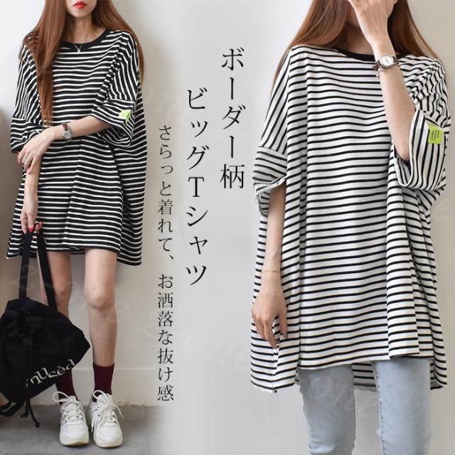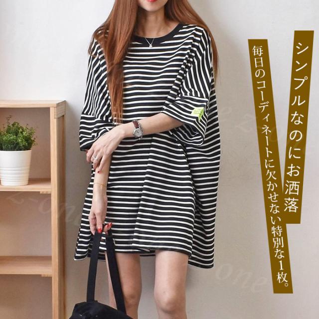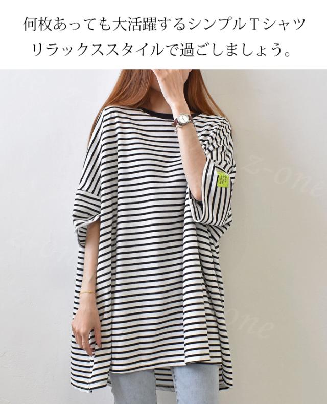 Tシャツ ボーダー柄 ロング レディース 春新作 送料無料 トップス カットソー 半袖Tシャツ ベーシック 半袖 ゆったり ロングT 大きいサイズ 体型カバー 入学式 入園式プレゼント 入学式 入園式