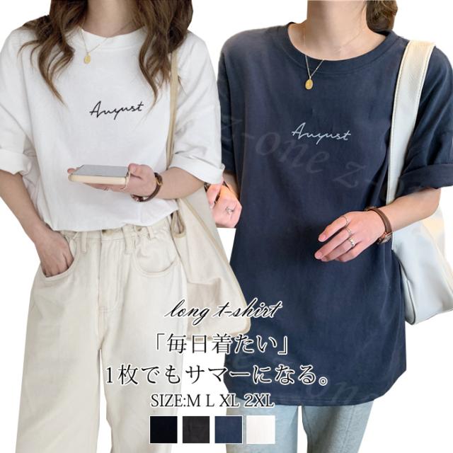 <2点まとめ買いで送料無料>Tシャツ 綿混 レディース 春新作 送料無料 トップス カットソー 半袖Tシャツ ベーシック 半袖 ゆったり ロング ロングT 大きいサイズ 体型カバー 無地 入学式 入園式プレゼント 入学式 入園式