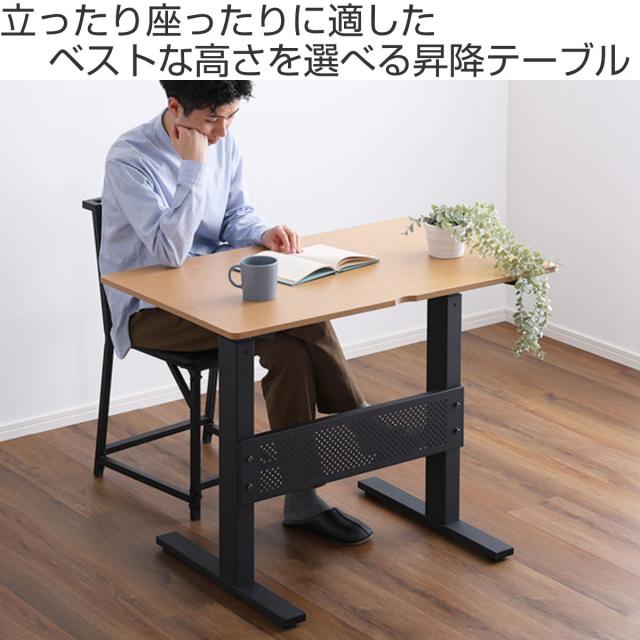 ワークデスク 昇降テーブル 幅96.5cm ガス圧 無段階レバー式 ( スタンディングデスク 昇降デスク パソコンデスク 高さ調節 木目調 机 昇降式 パソコン 在宅ワーク )