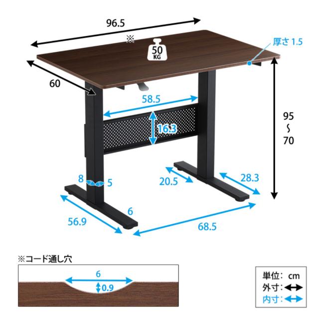 | サイズ | 約 幅96.5×奥行60×高さ70〜95(cm) |