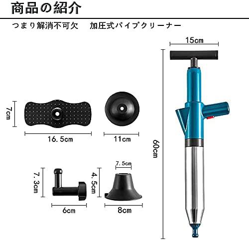 トイレ詰まり解消 パイプクリーナー 加圧式 疏通ツールー トイレプランジャー 詰まり取り パイプ掃除機 強力 簡単 洋式トイレ用 お風呂 洗面所 キッチン ポンプ 排水溝 排水管 浴室 浴槽 家庭用 業務用 6点セット