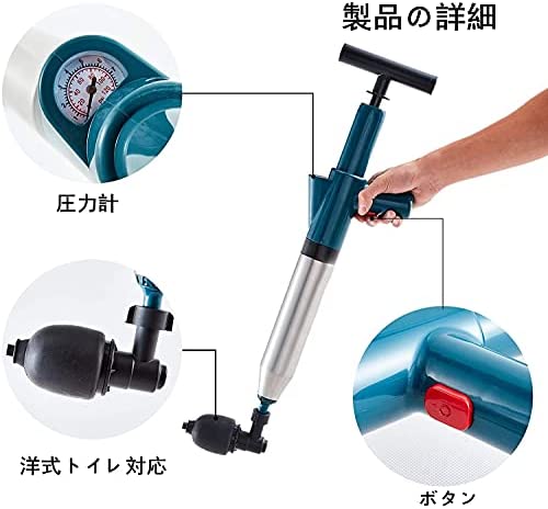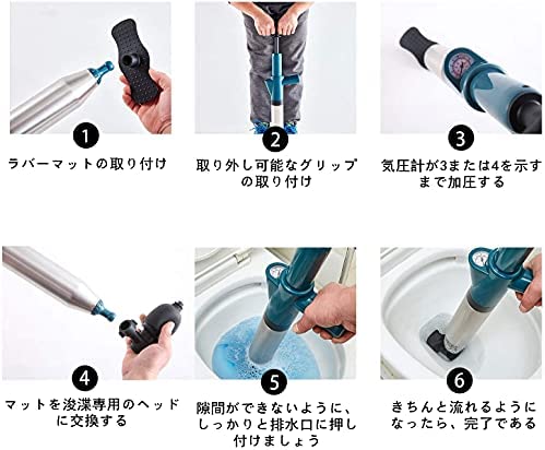 【ワンタッチでつまりを解消】本体と空気入れを接続し、次は対応な先端ゴムを選び、それから空気入れで適当な圧力を加圧し、ワンタッチつまりを解消します!トイレ、浴室、洗面台の詰まりの除去に、強力な気圧ですばやく詰まりを解消します。詰まり水に触れずクリーンな作業が可能。
