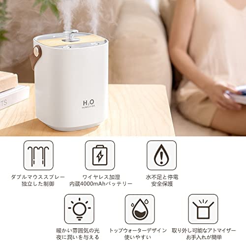 【充電式加湿器】4000mAhバッテリーが内蔵され、充電しながらの使用はもちろん、フル充電した後 【携帯に便利】サイズ:11.5×:11.5×14cm,加湿器は片手で持ちやすくなっております