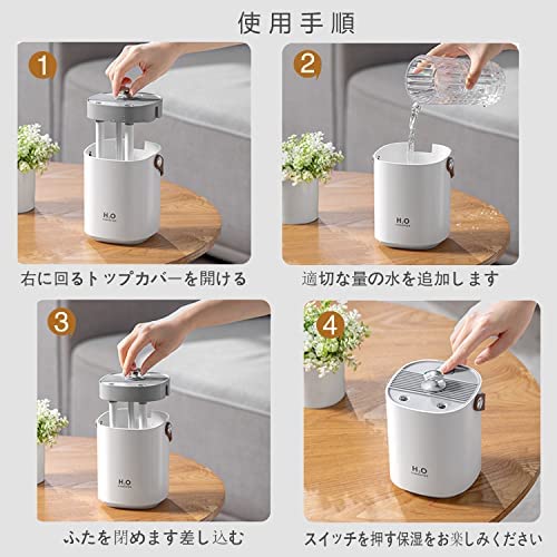 【超静音設計&LEDライト】 稼動音わずか20dB、寝室の湿度を保ちながら、快適な眠りを邪魔になりません。カラフルなLEDライトが搭載され、やさしい光で癒しの空間を作り出します。ライトを完全にオフすることもできるので、リビング・寝室はもちろん、書斎や車内などにも気兼ねなく設置できるのもポイントです。