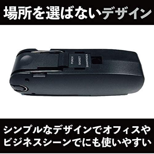 多機能文房具セット ツールキット 8点 握りやすい ホチキス/穴あけパンチ/鉛筆削り/はさみ/巻き尺/ナイフ/ステープルリムーバー/収納ボックス/フック付 コンパクトサイズ 事務仕事 職場 学校などで大活躍 ブラック 11.2×3.7×3.2cm