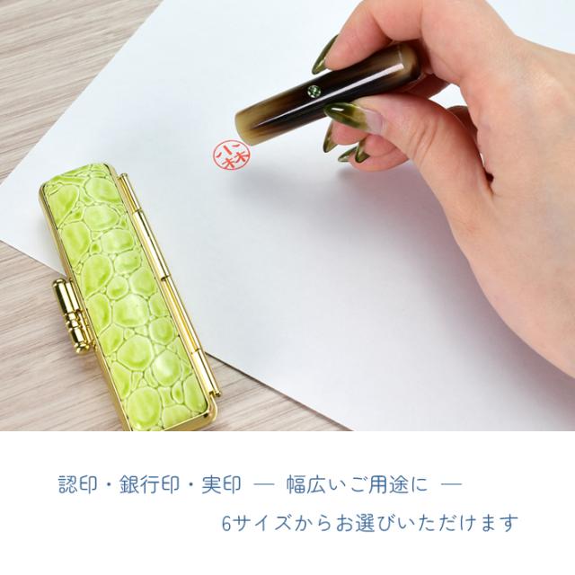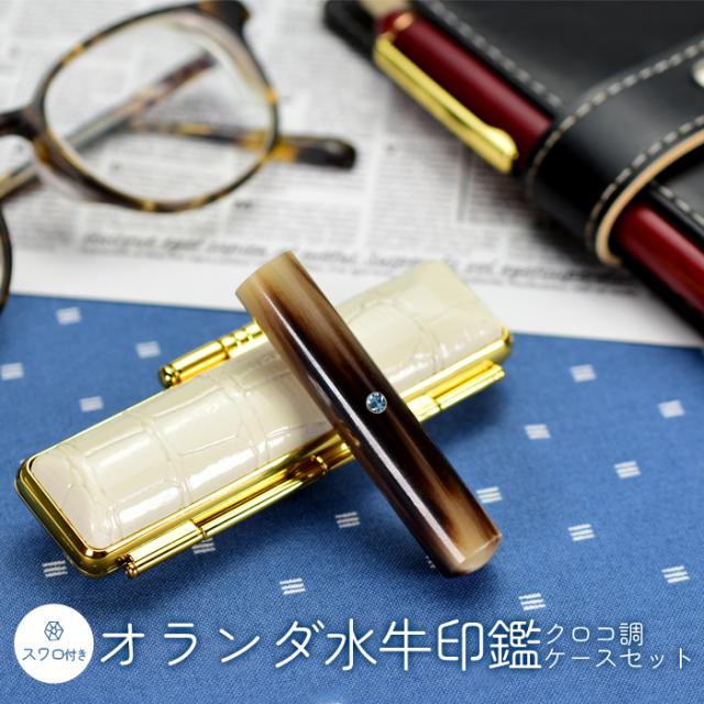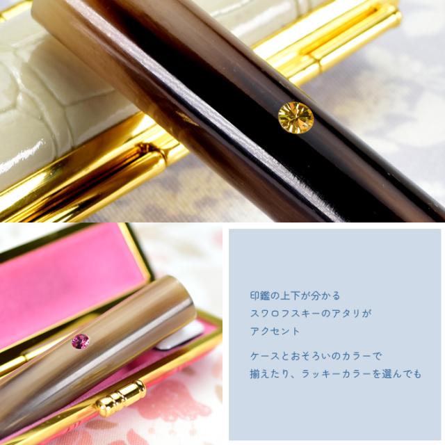印鑑 はんこ 女性 子供 銀行印 オランダ水牛 10.5 〜 18.0mm スワロフスキーアタリ付き クロコ調ケースセット (HK075) 認印 実印 ハンコ 判子 個人 ケース付 おしゃれ 可愛い 赤ちゃん プレゼント ギフト 祝い 記念