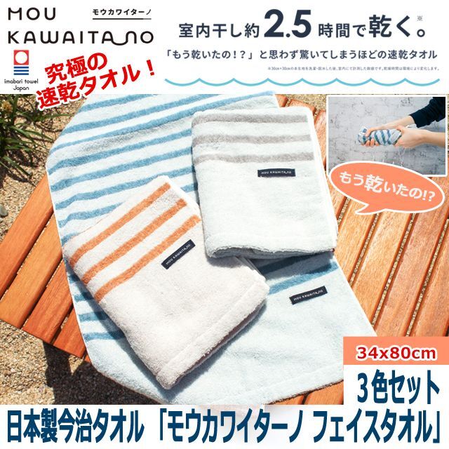 梅雨対策 日本製今治タオル 「モウカワイターノ フェイスタオル3色セット」 (34×80cm 3枚セット 3色組 速乾タオル)