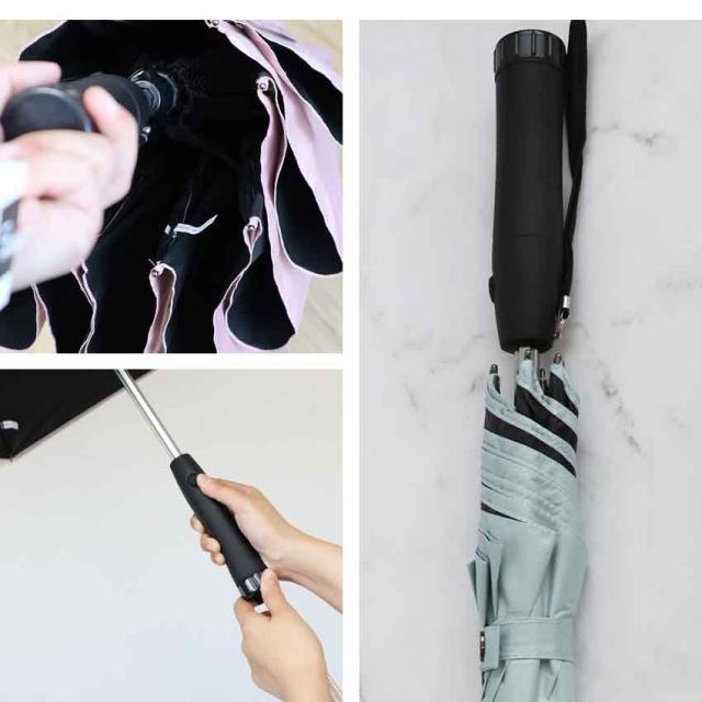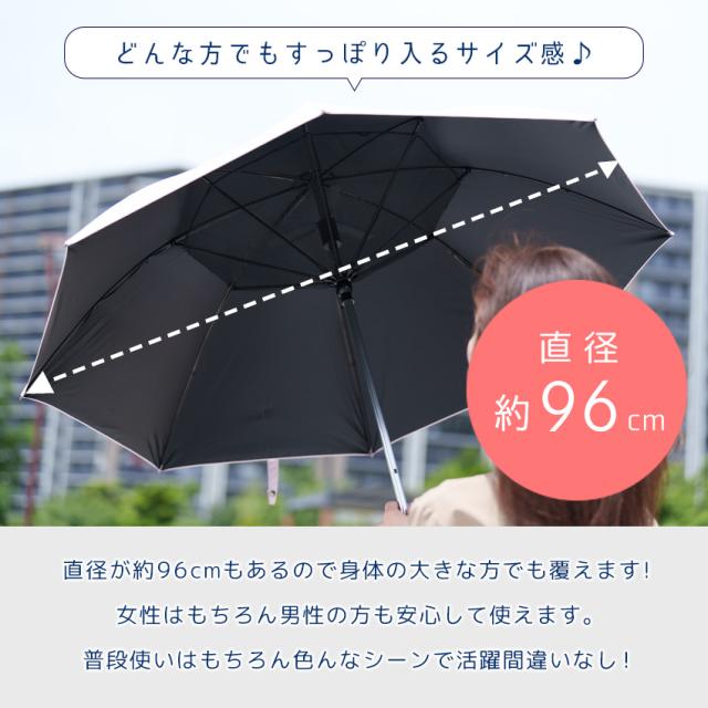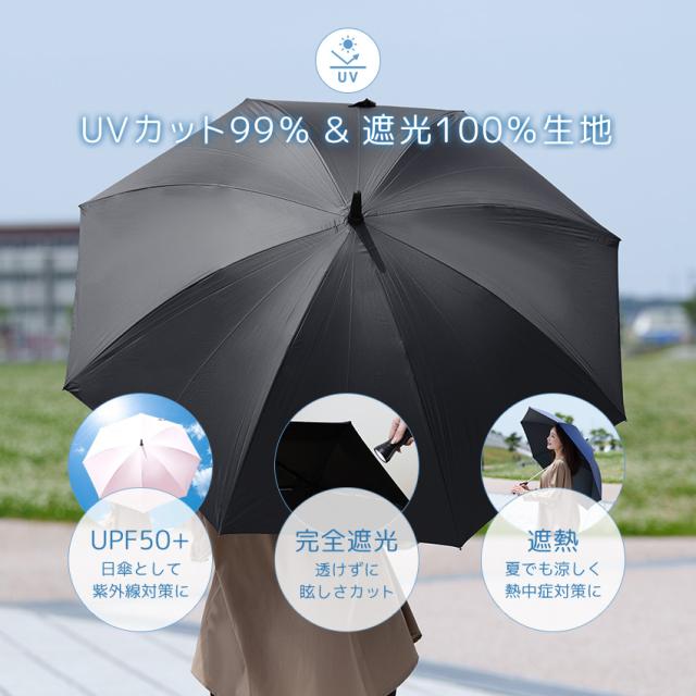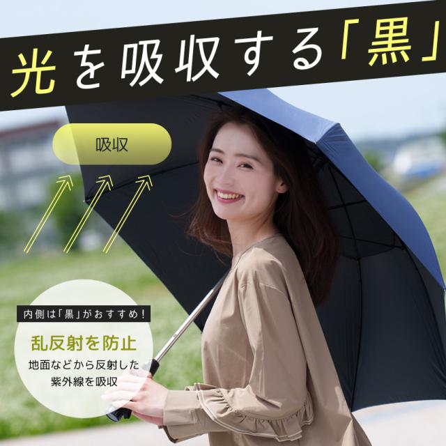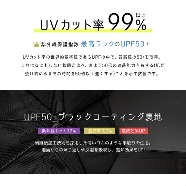 | 【UVカット99%&遮光100%生地】 紫外線保護指数はUPF50+の最高ランク。 傘の裏面はUPF50+ブラックコーティング裏地で照り返しの乱反射を吸収。 |