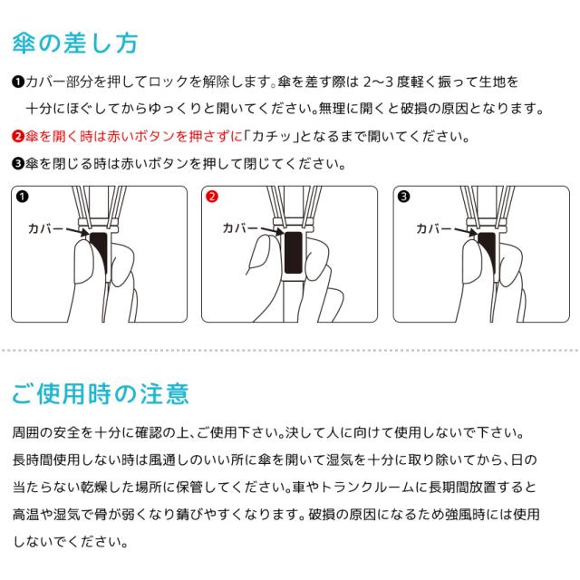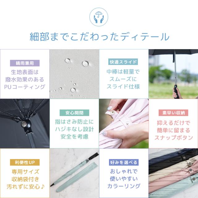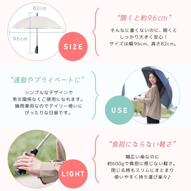 | 【晴れ雨兼用】 UVカット+撥水加工で日傘にも雨傘にも。 |