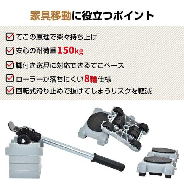 家具移動 ヘルパー セット 家具移動リフター 高さ調節可能 リフター 脚付き家具対応 引越し 家具裏の掃除 重物 移動 便利 ヘルパー 台車 sg184
