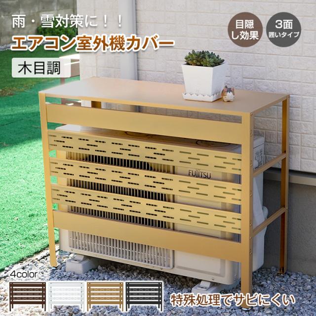 新生活 エアコン 室外機 カバー 通気穴 通気孔 通気口 木目調 室外機カバー DIY 雪 収納 日よけ 室外機ラック ラック ルーバー 軽量 お手入れ簡単 目隠し ベランダ 庭 節電 遮光 多肉棚 ガーデニング